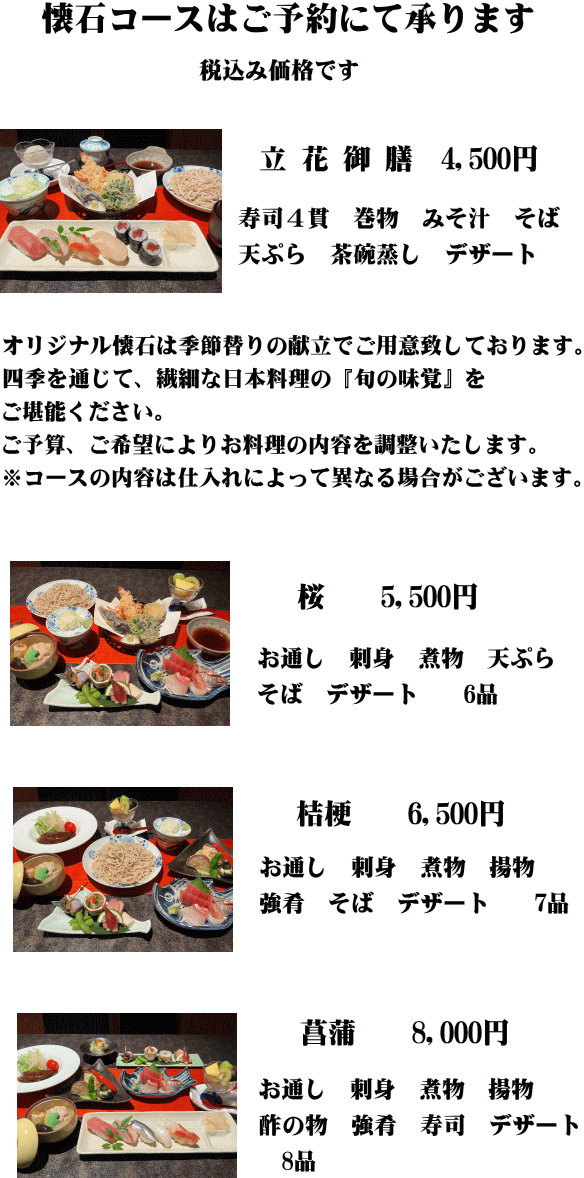 蕎麦 寿司 懐石 和の膳 立花
